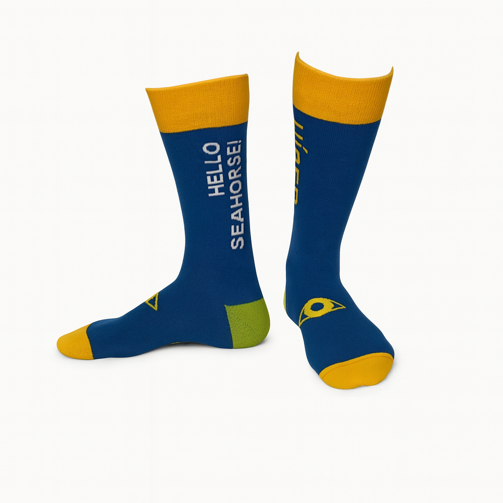 El interior juega con la energía de los colores: una tapa en azul y la otra en amarillo, dando contraste y fuerza al concepto.